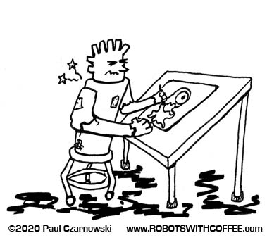 Another doodle where I don’t know if this was based on an actual moment of my life – did I hurt myself? Anyway, he’s his own chair, I thought that was funny in looking at him later. Here’s some bonus robros: